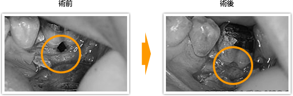 歯周組織再生誘導材料である「エムドゲインゲル」という薬剤を塗布することで、歯が生えてくるときの環境を再現する方法です。